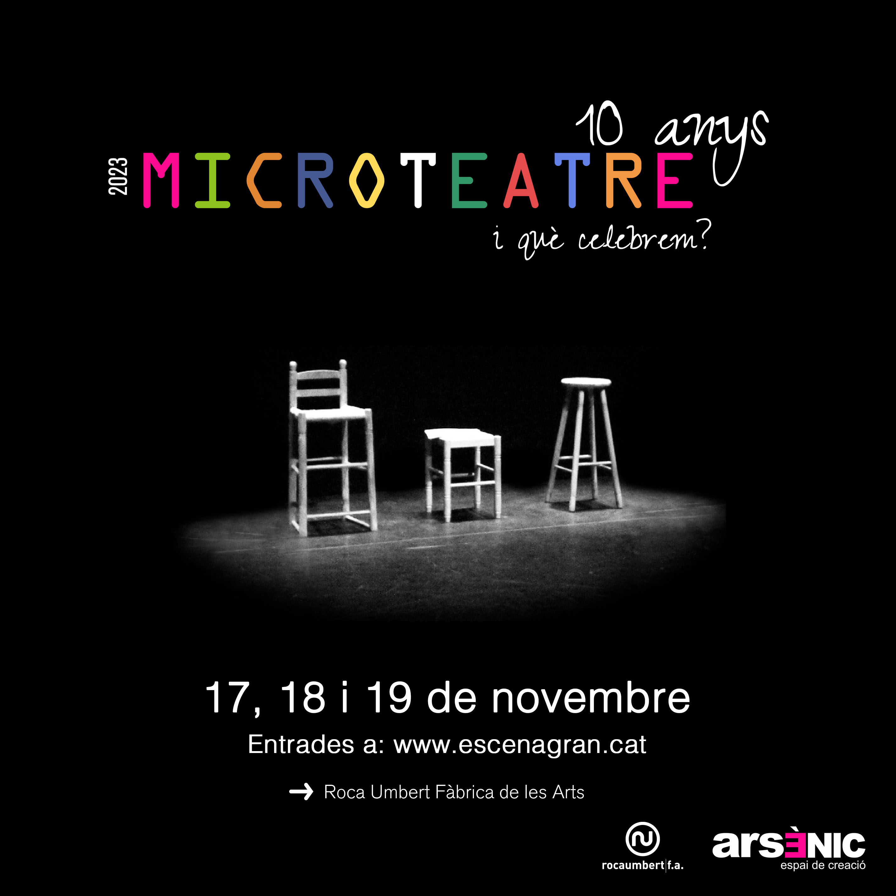 Projecte de creació escènica, organitzat per Arsènic Espai de Creació i Roca Umbert, que planteja per desena vegada la representació de quatre breus obres teatrals en espais singulars de la fàbrica. La temàtica d’aquest any girarà entorn de la idea ‘I què celebrem?’. Els textos representats sorgeixen d’un concurs adreçat a persones que s’inicien a la dramatúrgia amb direcció professional.QUATRE OBRES EN QUATRE ESPAIS SINGULARS