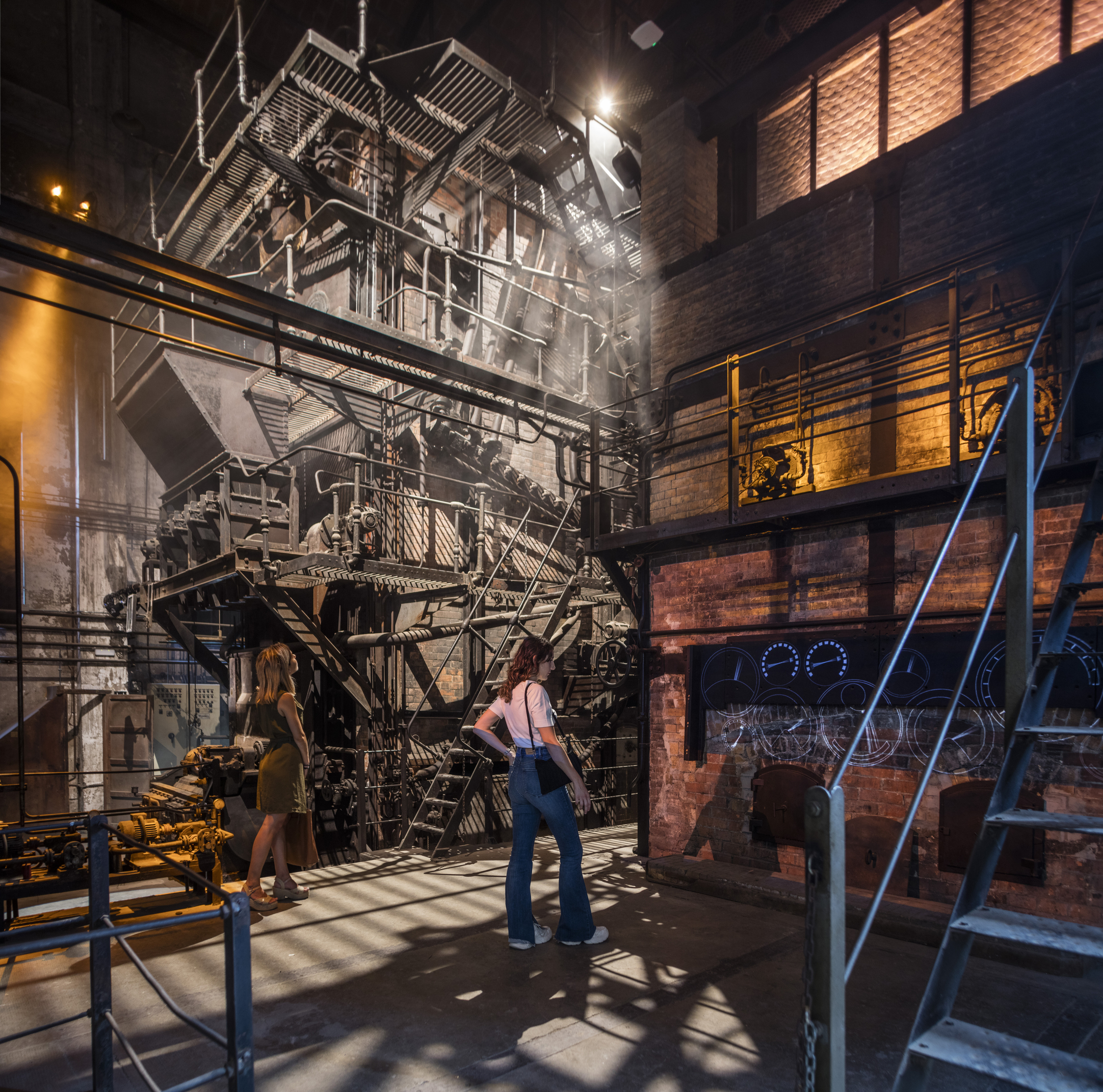 Els recursos lumínics, el so i els audiovisuals juguen un paper fonamental per poder interpretar el patrimoni industrial de la fàbrica de Roca Umbert i identificar els diferents elements i els seus usos.